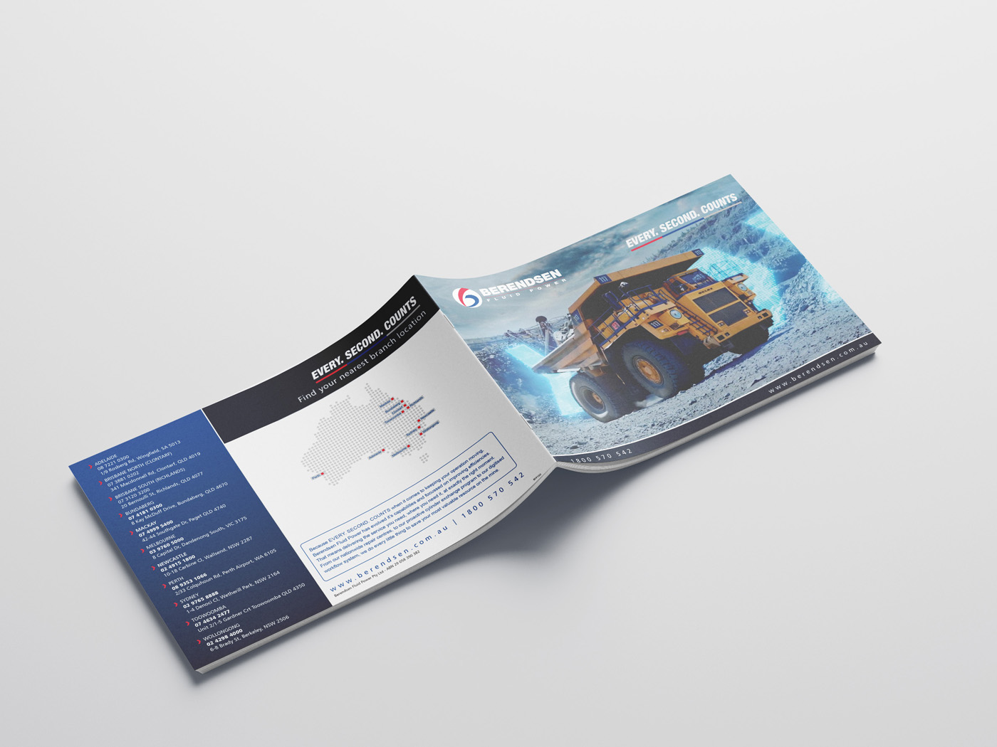 Berendsen Fluid Power developed a software to streamline their Hydraulic Repair Process. This software needed a brand and also printed literature to educate customers how this could benefit them. I designed this logo using the company colours and the arrows to represent movement and time. This logo has been placed on several printed and digital platforms including brochures, pull up banners and videos.