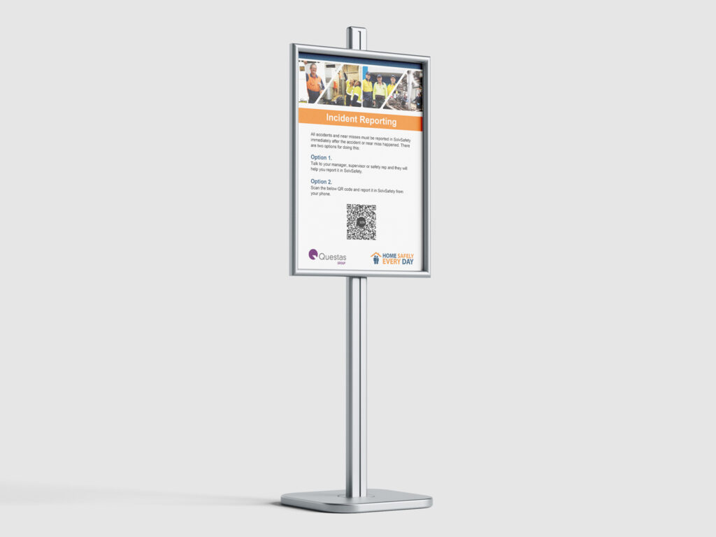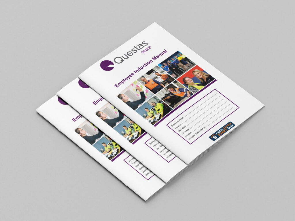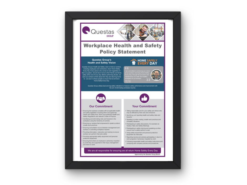I was briefed to design a logo and branded literature regarding the Questas Group Health and Safety vision. This logo had to be of contrasting colour to the company logo. This logo was to be branded on company literature which was also designed to bring in a cohesive polished look. Literature included Health and Safety policy poster, Manuals, incident report literature, emails and promotional items.